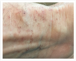 This combination of bite and spray results in a painful experience. The defence tactic of Weavers is to mob the attackers. The picture shows the damage inflicted on Andrew Stephenson from an encounter with a large nest. Short term agony, long term reminders of the experience!